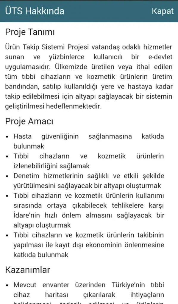Bu işlem için kullanıcıların Apple Store ve/veya Google Play Store’dan ÜTS Mobil uygulamasını akıllı telefonlarına indirmesi gerekli. Şunu da belirtmeliyiz ki, bildirimi yapılmış olmasına rağmen evrak eksiği olan ürünler, tüm eksikler tamamlanana kadar “kayıtlı değil” olarak gözükecektir. Ayrıca, aynı barkoda sahip ürünlerin birden fazla bildirimi söz konusu ise, bildirimi yapan firmaların bilgileri ayrı ayrı ekranda gözükecektir.
